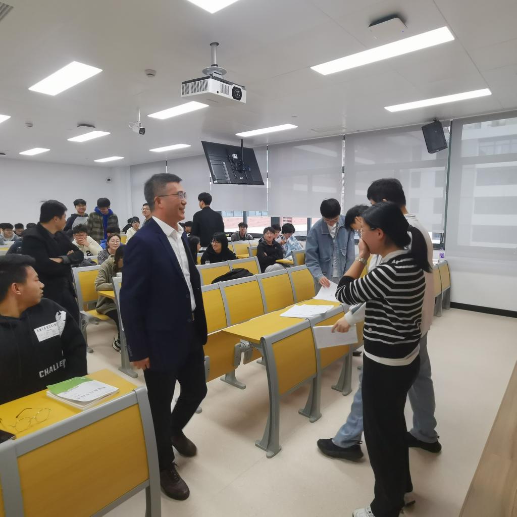 巡课期间,徐可明一行实地走访了多个教室,深入不同年级、不同专业的课堂进行听课察看。仔细观察教师的教学状态、课堂互动氛围,同时密切关注学生的出勤情况、听课专注度及与教师的互动反馈。在课间休息时间,徐可明主动走进师生中间,与授课教师亲切交流,详细询问课程准备、教学进度以及在实际教学中遇到的困难与挑战,并对教师们饱满的工作热情和认真的教学态度给予了充分肯定。同时,他还与同学们进行面对面沟通,关心地询问他们的学习感受、考研情况,还勉励同学们要珍惜韶华努力学习。除了聚焦课堂教学核心环节,徐可明一行还特别关心师生的教学与学习环境保障,他们细致察看了教室的照明、空调、多媒体教学设备运行情况。