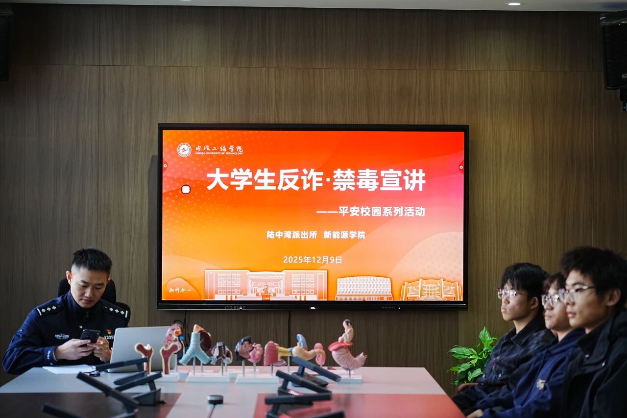 为提高学生安全防范意识,筑牢校园安全防线,近日,新能源学院联合陆中湾派出所在新能源大楼X-321会议室举办了“大学生反诈·禁毒宣讲”主题教育活动。本次活动由陆中湾派出所张警官主讲,学院各年级学生干部、寝室长代表及安全委员参加。