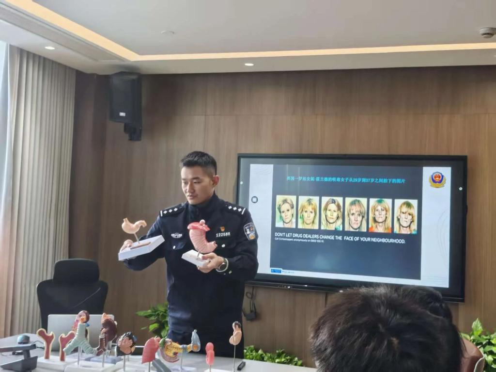 随后,张警官通过展示仿真毒品模型、播放警示案例视频,系统介绍了新型毒品的隐蔽形态和社会危害,重点解析了毒品对个人身心健康、家庭幸福和学业发展的严重影响,教育引导学生自觉远离毒品、抵制诱惑。学院老师结合学院近期安全工作情况,对宿舍安全、网络安全、出行安全等方面作了补充强调。
